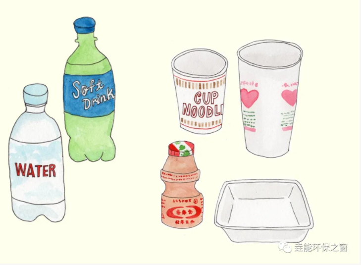 (2)塑料:各種塑料袋、塑料泡沫、塑料包裝、一次性塑料餐盒餐 具、硬塑料牙刷、塑料杯子、礦泉水瓶等;