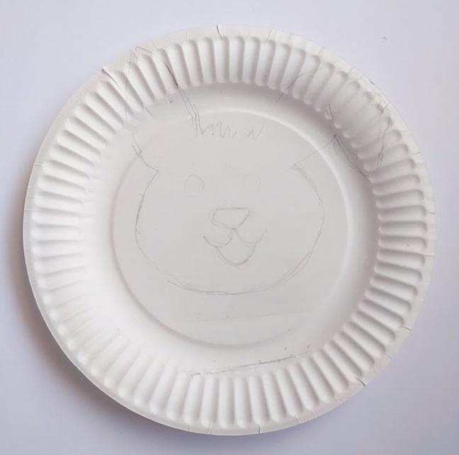 第一步,公眾號下載我們的模板圖片,按照兔子的形狀畫畫,用您的小手手畫一只兔子頭的輪廓在盤子上。或者把模板圖片保存并調整,打印出來,粘在盤子上邊。