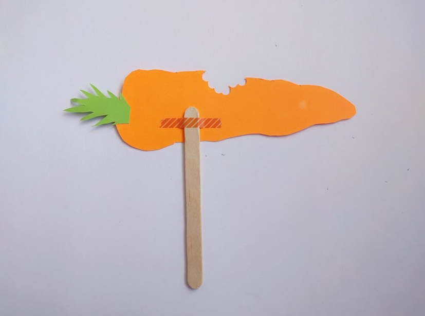 第三步,用白紙裁剪出兔兔小手托住蘿卜的形狀(如下圖),最后再用膠水粘在蘿卜下方。