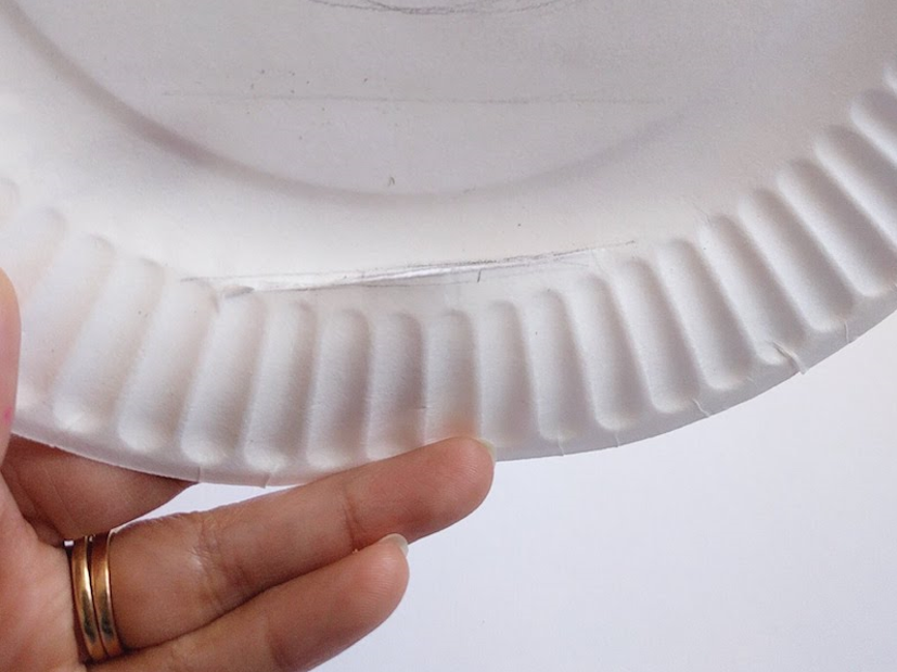 最后,在盤子下方位置畫一條線,再用小刀輕輕刮開一條孔,把雪糕棒沿著孔位放下去,作品就完成啦!
