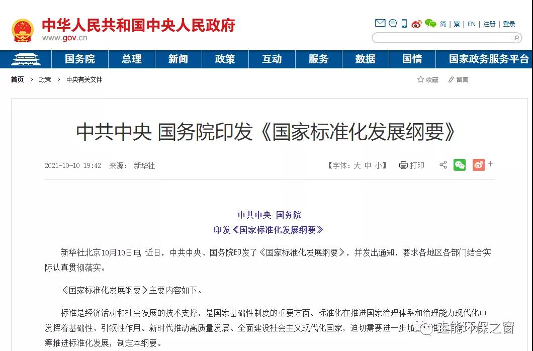 《國家標準化發展綱要》發布,將建立健全碳達峰、碳中和標準