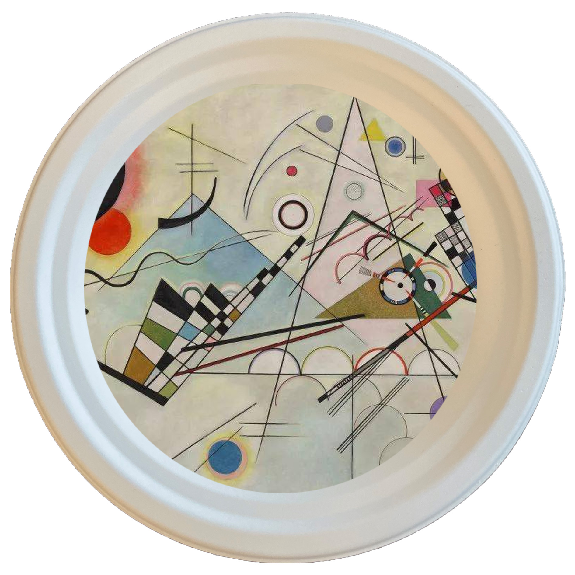 康定斯基在1923年創作了這幅《構圖八號》,康定斯基的“構圖”系列來源于音樂標題,以數字標示,旨在去除個人化成分,表達非具體化的一般范疇,試圖達到哲學的普遍性效果。