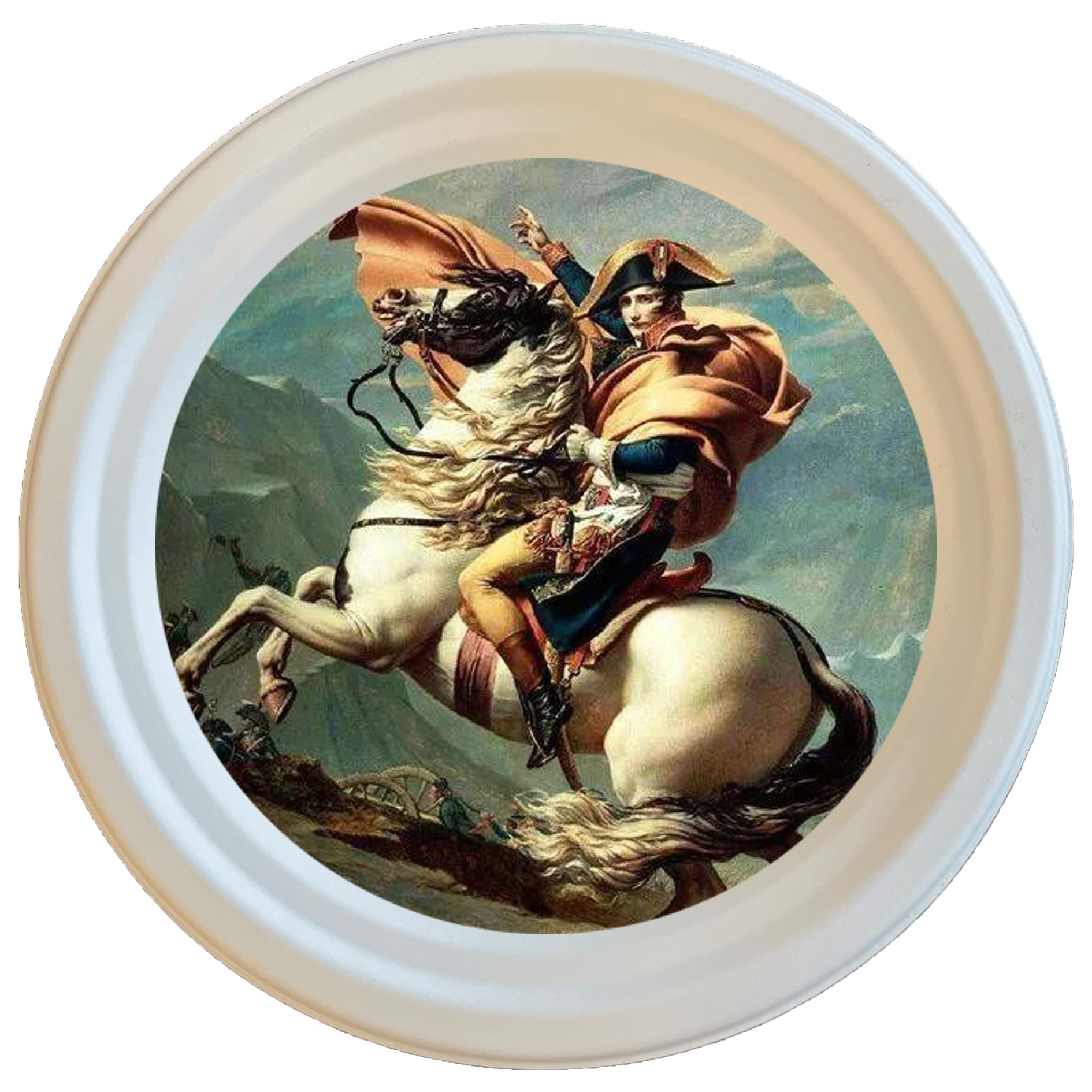《拿破侖穿越阿爾卑斯山》-達維特,它們繪制的都是拿破侖·波拿巴在發動馬倫哥戰役前越過圣伯納隘道時的情景,委托人并不是拿破侖,而是當時的西班牙國王卡洛斯四世。