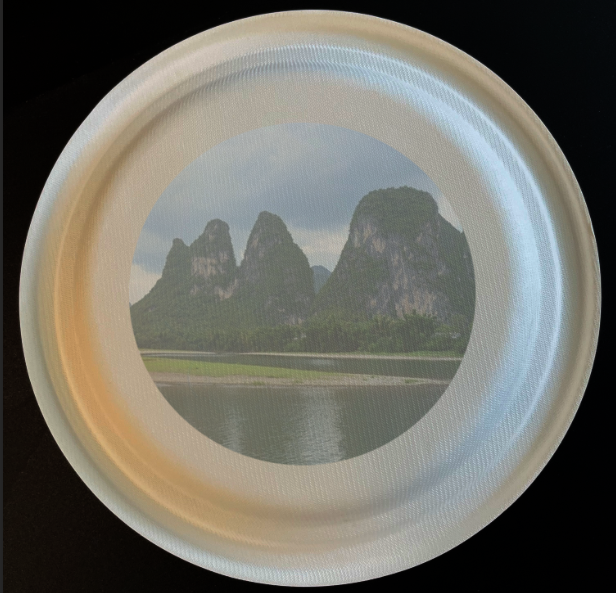 餐盤的背面也是有紋路,規則的棱角匯聚成一條又一條的線條,像極了一座又一座的山丘。俗話說,桂林山水甲天下,今天我們將桂林山水放到餐盤山脈,與餐盤背面的紋路相得益彰,宛如一張新的畫作躍然紙上。